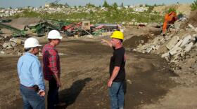 Installing a new steel beam, removing an oil tank, and digging for the new foundation.