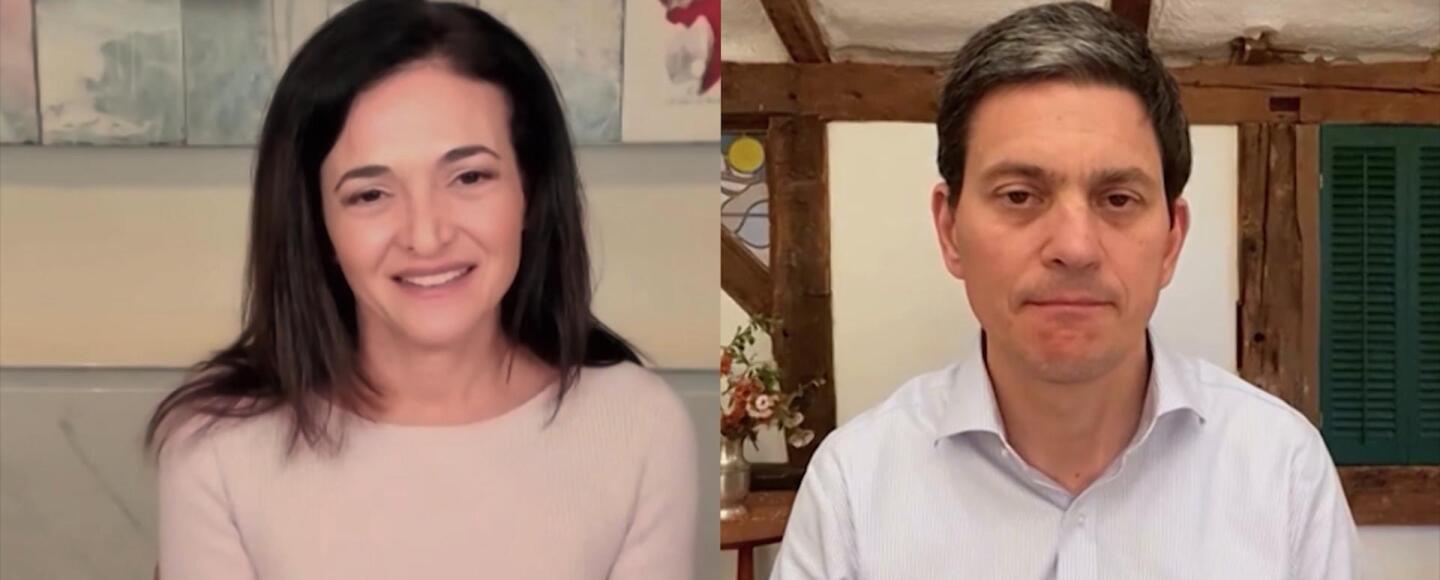 Facebook COO Sheryl Sandberg and International Rescue Committee president David Miliband team up to discuss how COVID-19 will affect women and girls worldwide. They say the pandemic poses a particular threat to girls’ education in the developing world and is increasing sexual violence. They also discuss combating misinformation.